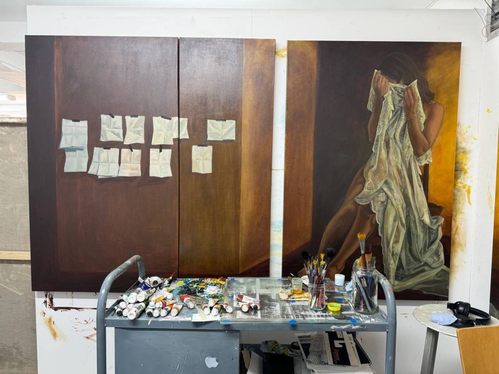 This series of paintings explores the theme of fading memories and lost stories. I want to show how time alters our perceptions and shapes our recollections of the past. Ultimately, we are left with nothing. It’s not that I want to prophesy, predict, or embrace pessimism; rather, it reflects the inevitable nature of life.